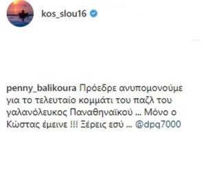 Ένα από τα πολλά σχόλια κάτω από την ανάρτηση του παίκτη της Φενέρμπαχτσε έγραφε: «πρόεδρε αναμένουμε για το τελευταίο κομμάτι του παζλ του γαλανόλευκου Παναθηναϊκού. Μόνο ο Κώστας έμεινε !!! Ξέρεις εσύ..».