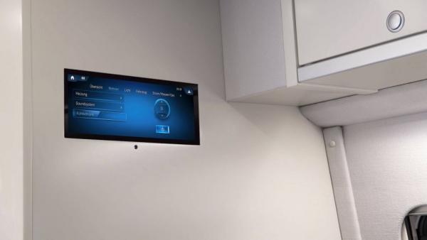 To MBAC το οποίο αποτελεί μια παραλλαγή του ευφυούς infotainment που είδαμε στην νέα A-Class, και το οποίο υποστηρίζοντας λειτουργία φωνητικών εντολών, επιτρέπει στον ιδιοκτήτη να παραμετροποιήσει μεταξύ άλλων, τις ρυθμίσεις της αερανάρτησης, των φωτιστικών σωμάτων και της pop-up οροφής -η οποία παρεμπιπτόντως εφοδιάζεται με φωτοβολταϊκά στοιχεία τα οποία μπορούν να καλύψουν ένα μεγάλο μέρος των ενεργειακών αναγκών ιδίως σε στάση- ή ακόμα και τον εξοπλισμό του εσωτερικού όπως λ.χ. το ψυγείο, δίνοντας απλώς φωνητικές εντολές ή και μέσω του smarpthone του.