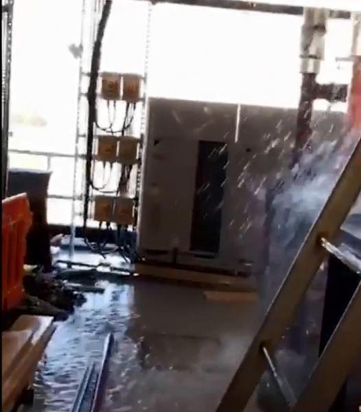 Το τελευταίο πρόβλημα όμως δεν είναι απλώς ότι καθυστερεί την παράδοση του έργου. Το νερό από τον σπασμένο αγωγό έτρεχε για περίπου 45 λεπτά με αποτέλεσμα να πλημμυρίσουν κυριολεκτικά δύο πατώματα στο συγκεκριμένο κομμάτι της κερκίδας. Αλλά δεν ήταν μόνο η πλημμύρα…
