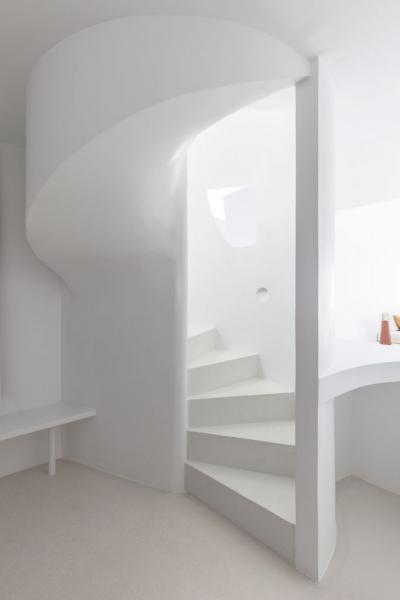 Η ιδέα, να κρατήσουν την υπάρχουσα παραδοσιακή αρχιτεκτονική και να δώσουν «ένταση» στους εσωτερικούς χώρους, στέφθηκε με επιτυχία. Ο μινιμαλισμός κυριαρχεί και το λευκό χρώμα βρίσκεται παντού.