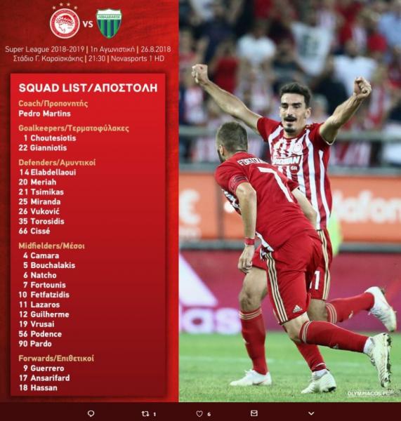Μέσα όλα τα νέα αποκτήματα του Ολυμπιακού, στην αποστολή που ανακοίνωσαν οι ερυθρόλευκοι για το ματς ενόψει κόντρα στον Λεβαδειακό.