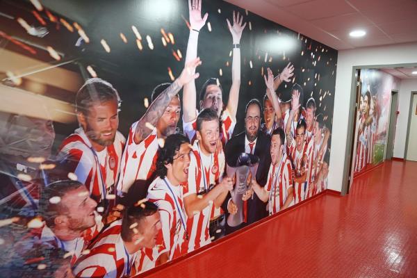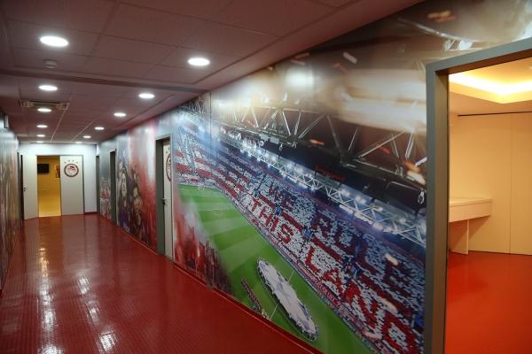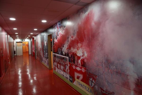 Νέες φωτογραφίες υπάρχουν στους τοίχους και στην πλευρά των φιλοξενούμενων κυριαρχούν στιγμιότυπα από την θύρα 7 με καπνογόνα ενώ από την πλευρά των αποδυτηρίων του Ολυμπιακού υπάρχουν φωτογραφίες με τα εντυπωσιακά κορεό που έχουν δημιουργήσει οι οπαδοί των ερυθρόλευκων. Επίσης υπάρχουν και φωτογραφίες από τις φιέστες του Ολυμπιακού.