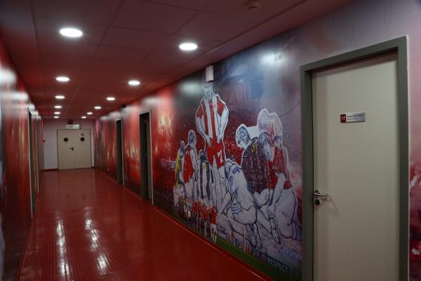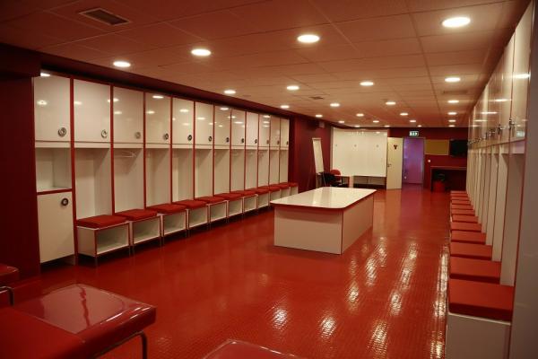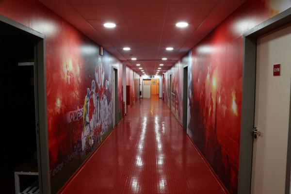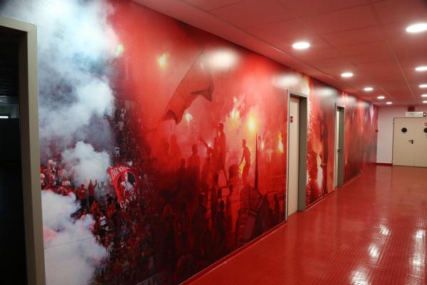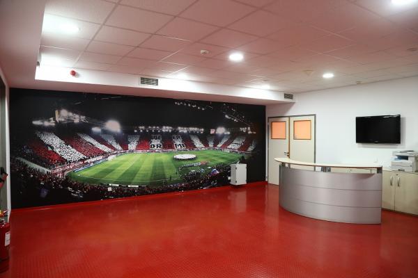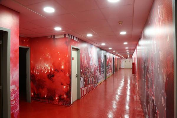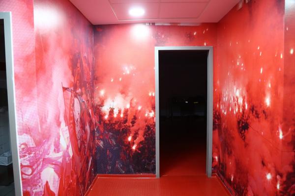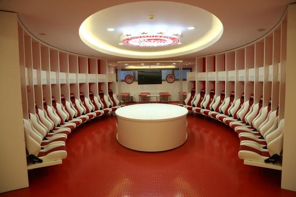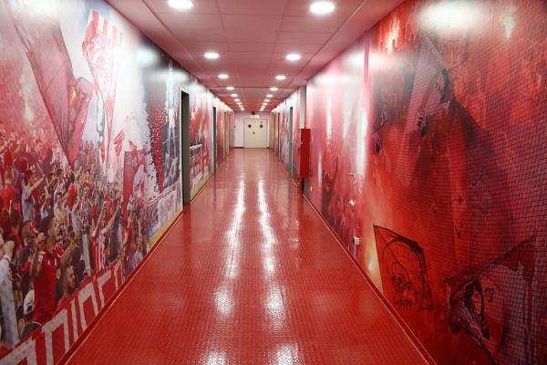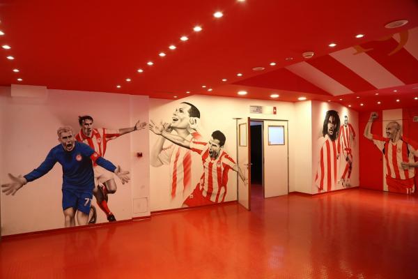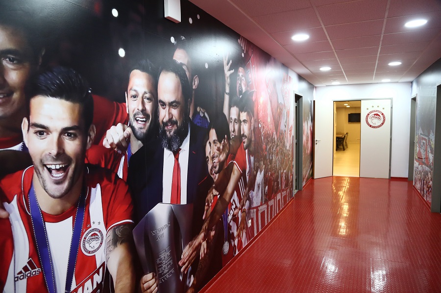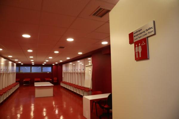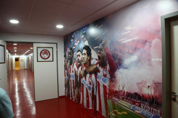 Θα πρέπει μάλιστα να σημειωθεί ότι ανακαινίστηκαν και βάφτηκαν σε βαθύ κόκκινο χρώμα τα αποδυτήρια των φιλοξενούμενων κι αυτό έγινε σε συνεννόηση με τον Πέδρο Μαρτίνς. Ο προπονητής του Ολυμπιακού ήθελε να υπάρχει παντού κόκκινο χρώμα και φωτογραφίες με μεγάλες στιγμές της ομάδας.