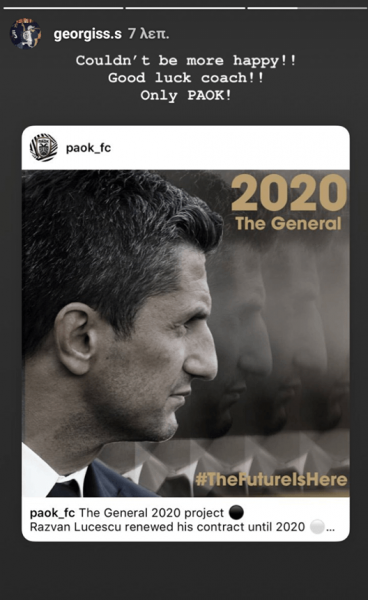 Ο Γιώργος Σαββίδης ήταν ένας από τους ανθρώπους που στήριξαν στα δύσκολα τον Ραζβάν Λουτσέσκου. Το μέλος της διοίκησης του ΠΑΟΚ, ήθελε την παραμονή του Ρουμάνου τεχνικού στην ομάδα και για τα επόμενα χρόνια. Όταν σήμερα η ΠΑΕ, ανακοίνωσε την επέκταση του συμβολαίου του 49χρονου προπονητή, δεν το άφησε ασχολίαστο. Ο μεγαλύτερος υιός της οικογένειας Σαββίδη μέσα από τον προσωπικό του λογαριασμό στο instagram αναφέρθηκε στο συγκεκριμένο θέμα δηλώνοντας πολύ χαρούμενος.