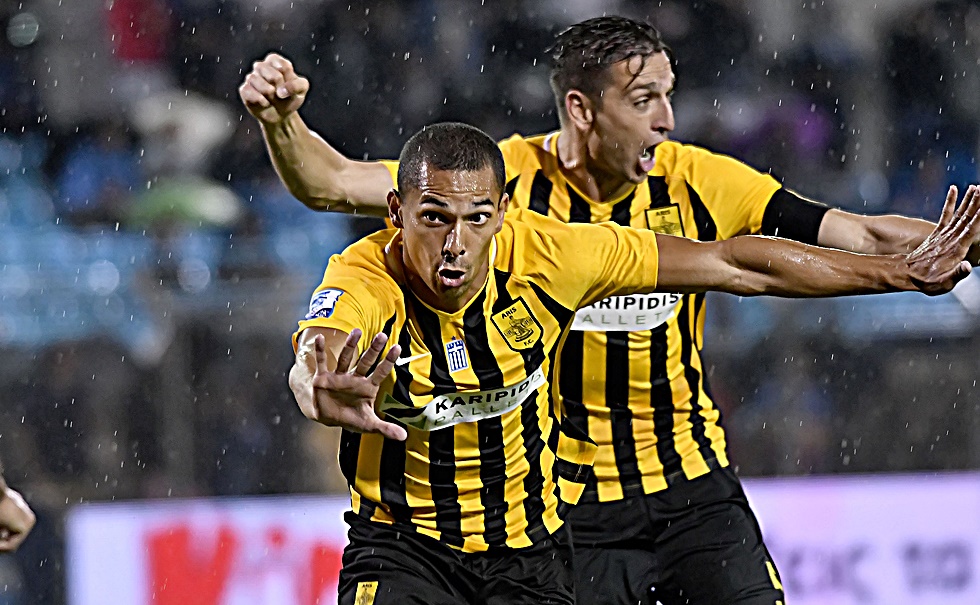 Ο Νικολά Ντιγκινί σκοράρει στη Λαμία και «φεύγει» να πανηγυρίσει μπροστά τους οπαδούς του Άρη. Πριν εκδηλώσει τον πανηγυρισμό, ζητά λίγο «χώρο» από τους συμπαίκτες του: Καθισμένος στο χλοοτάπητα, λυγίζει το ένα γόνατο και «δένει» εκεί τα χέρια του, στρέφοντας ελαφρώς δεξιά το κεφάλι.