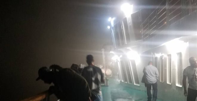 Συγκλονιστικές μαρτυρίες από επιβάτες: «Είμαστε όλοι στο κατάστρωμα, μυρίζει καμένο και βγαίνουν καπνοί από τους αεραγωγούς». Φωτογραφίες και βίντεο με τους επιβάτες στο κατάστρωμα να φορούν σωσίβια, έτοιμοι να εγκαταλείψουν το σκάφος.