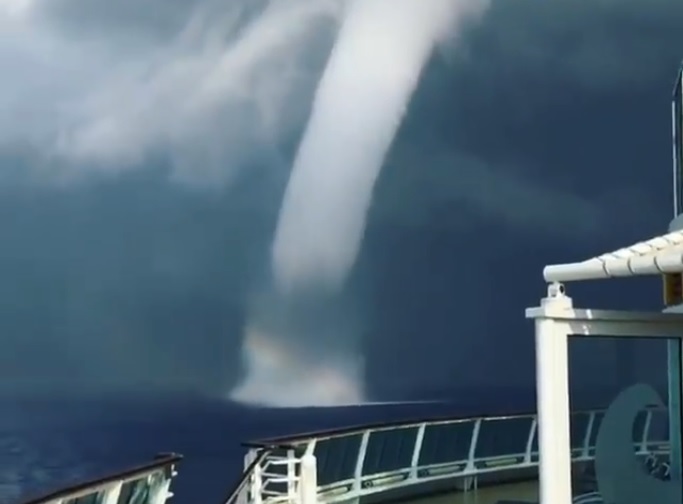 Σε βίντεο που αναρτήθηκε στο Facebook φαίνεται ο υδροστρόβιλος που σχηματίζεται ανοιχτά του νησιού, προκαλώντας εντυπωσιακές εικόνες.