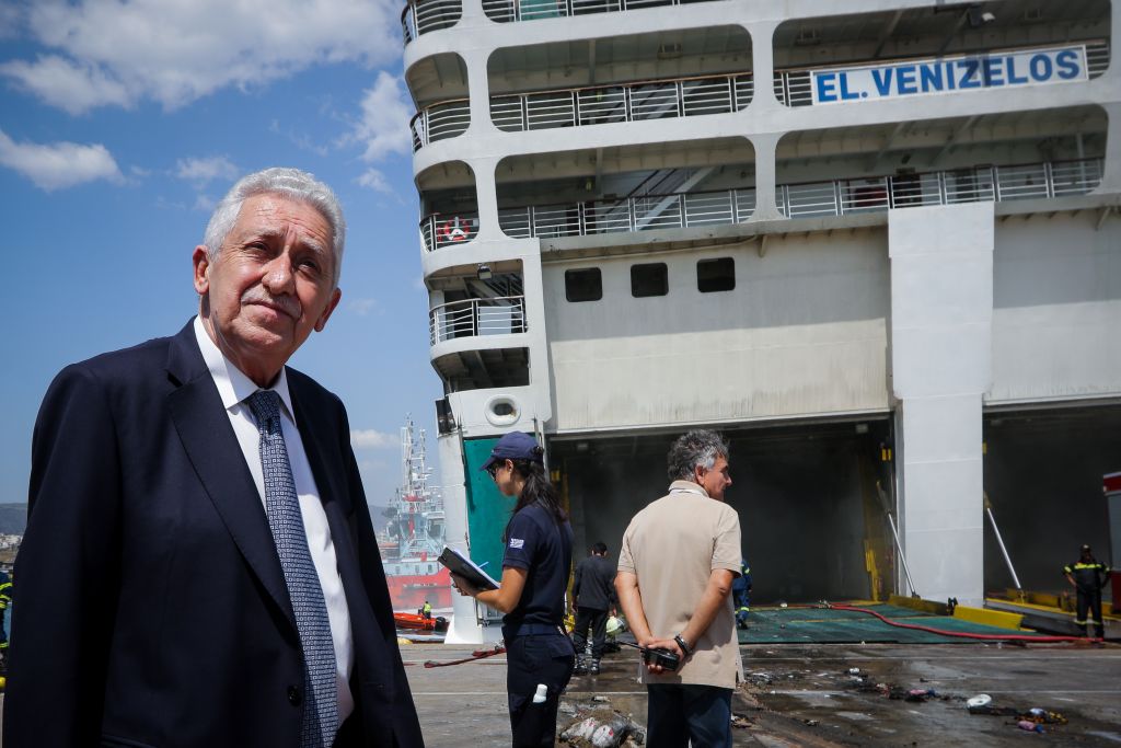 To πλοίο «Ελευθέριος Βενιζέλος», στο γκαράζ του οποίου εκδηλώθηκε πυρκαγιά το βράδυ της Τρίτης, 28 Αυγούστου, επισκέφθηκε στην Ακτή Ξαβερίου, στο λιμάνι του Πειραιά, ο νέος υπουργός Ναυτιλίας, Φώτης Κουβέλης, συνοδευόμενος από τον απερχόμενο υπουργό, Παναγιώτη Κουρουμπλή και τον αναπληρωτή υπουργό Ναυτιλίας, Νεκτάριο Σαντορινιό.