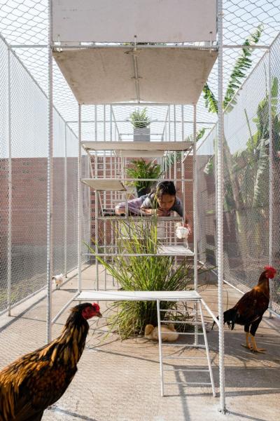 Κλείστε τα παιδιά στο κοτέτσι λένε οι υπεύθυνοι του αρχιτεκτονικού tudio Tropical Space στο Βιετνάμ. Το studio δημιούργησε ένα πολύπλοκο μέρος, που διαθέτει ένα δίκτυο από κουτιών, πλατφόρμες και σκαλοπάτια, τα οποία μπορούν να χρησιμοποιηθούν τόσο από κοτόπουλα όσο και από παιδιά!