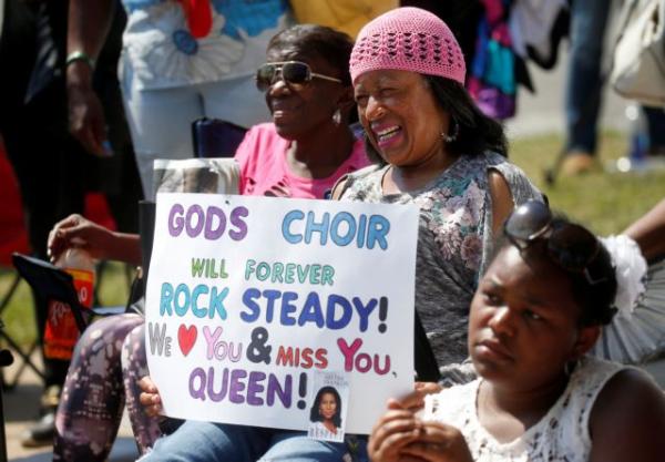 Η εκκλησία δονείτο από τη γκόσπελ μουσική και οι παρευρισκόμενοι φρόντισαν να τιμήσουν την Φράνκλιν με τον τρόπο που της έπρεπε: τραγουδώντας και χτυπώντας παλαμάκια. «Εμπρός λοιπόν, εδώ τελείται λειτουργία, υψώστε τη φωνή σας» κάλεσε το πλήθος ο επίσκοπος Τσαρλς Έλις Γ΄ενώ η χορωδία και η ορχήστρα έπαιζαν όλο και πιο δυνατά πίσω του.