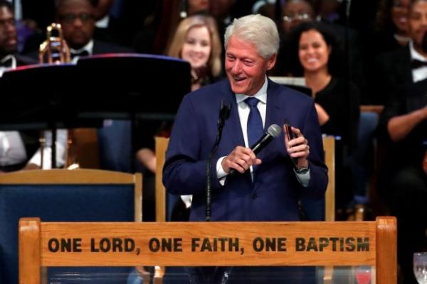 «Είχε τη φωνή μιας γενιάς, ίσως τη φωνή του αιώνα» είπε ο πρώην πρόεδρος, λέγοντας ότι και ο ίδιος ήταν «γκρούπι» της Φράνκλιν πολύ πριν αναλάβει προεδρικά καθήκοντα. Κλείνοντας την ομιλία του, κράτησε το μικρόφωνο κοντά στο κινητό τηλέφωνό του για να ακουστεί από τα μεγάφωνα της εκκλησίας το χιτ «Think» της Φράνκλιν.
