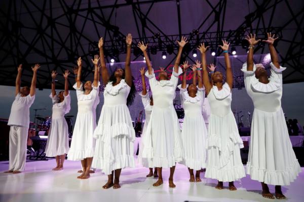 Μια χορωδία γκόσπελ που παρέπεμπε στην αρχή της μουσικής σταδιοδρομίας της Φράνκλιν στην ενορία όπου λειτουργούσε ο πατέρας της, πρώην πάστορας, τίμησε επίσης τη σπουδαία καριέρα έξι δεκαετιών που ανέδειξε την Αρίθα Φράνκλιν σε μια από τις μουσικούς που απολάμβαναν τον μεγαλύτερο σεβασμό στις ΗΠΑ.