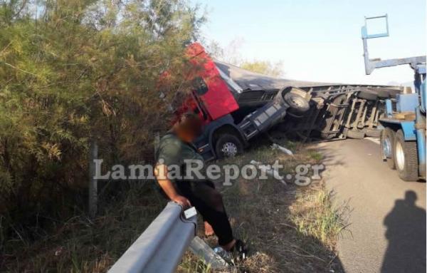 Ο οδηγός της νταλίκας έχασε τον έλεγχο και το βαρύ όχημα βρέθηκε εκτός δρόμου