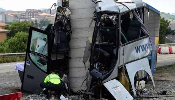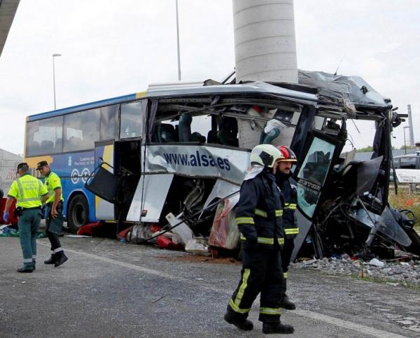 Τουλάχιστον πέντε άνθρωποι έχασαν τη ζωή τους και είκοσι τραυματίστηκαν το μεσημέρι της Δευτέρας στη βόρεια Ισπανία, όταν λεωφορείο σφηνώθηκε στο υποστύλωμα γέφυρας.