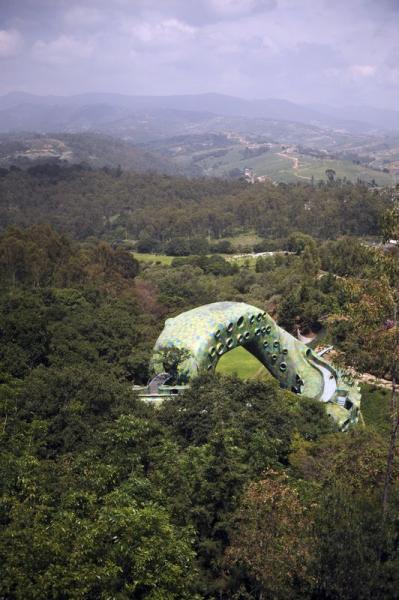 Υπέρμαχος της οργανικής αρχιτεκτονικής, ο Σενοσιάιν χρησιμοποίησε χρώμα και σχήμα για να δέσει το αρχιτεκτόνημα με 5.000 τετραγωνικά μέτρα εδάφους με πτυχώσεις. Η συνεχής μορφή του σπιτιού-φιδιού ανασηκώνεται από το έδαφος και, με τις πράσινες, μπλε, ροζ και πορτοκαλί αποχρώσεις της, μεταφέρει τους επισκέπτες σε ένα ονειρικό, ψυχεδελικό περιβάλλον.