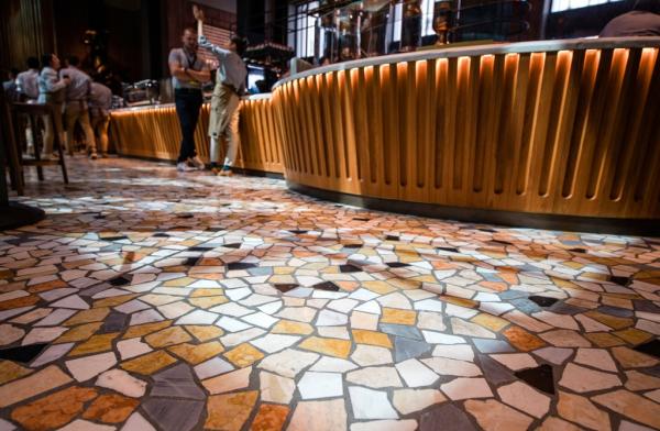 Το όμορφο καφέ είναι 25.000 τετραγωνικά πόδια και διαθέτει μαρμάρινα πάγκους, αρχιτεκτονική εμπνευσμένη από την Ιταλία, πολλά καφέ μπαρ, ένα πραγματικό μπαρ με αλκοόλ, σταθμό πρόσβασης και πολλά άλλα. Εάν σταματήσετε για έναν καφέ, μπορείτε να παραμείνετε για ώρες.