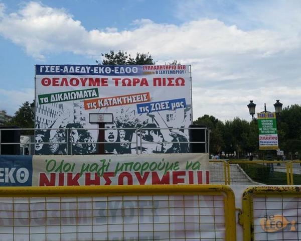 Ήδη στην Εγνατία με Αγία Σόφιας έχουν ξεκινήσει να συγκεντρώνονται μέλη της Εργατικής Αλληλεγγύης, ενώ στη Άγαλμα Βενιζέλου ξεκίνησε να στήνονται τα πανό και η εξέδρα. ΓΣΕΕ, ΑΔΕΔΥ, Εργατοϋπαλληλικό Κέντρο Θεσσαλονίκης και Ένωση Δημοσιοϋπαλληλικών Οργανώσεων Θεσσαλονίκης, καλούσαν στις 18:00 στο Άγαλμα του Βενιζέλου.
