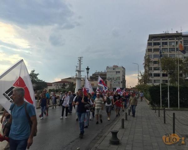 «Εδώ από τη Θεσσαλονίκη, σε μια αστυνομοκρατούμενη, αμερικανοκρατούμενη πόλη, διαδηλώνουμε κάτω από τις σημαίες του ΠΑΜΕ, για την ικανοποίηση των σύγχρονων λαϊκών αναγκών. Οχτώ χρόνια τώρα εναλλάξ οι κυβερνήσεις της Νέας Δημοκρατίας, του ΠΑΣΟΚ, του ΣΥΡΙΖΑ, μας έφεραν σε έναν εργασιακό μεσαίωνα» ανέφερε.