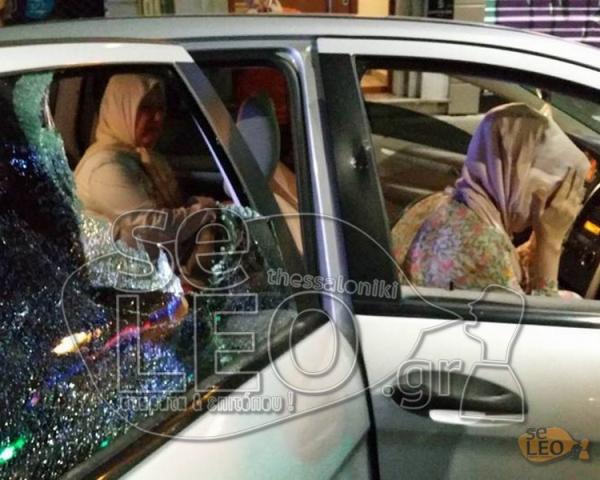 Σύμφωνα με το seleo.gr ομάδα ατόμων με ελληνικές σημαίες όρμησαν πάνω στο αυτοκίνητο που βρισκόταν στη συμβολή των οδών Τσιμισκή και Γούναρη, κάνοντας το γυαλιά καρφιά.