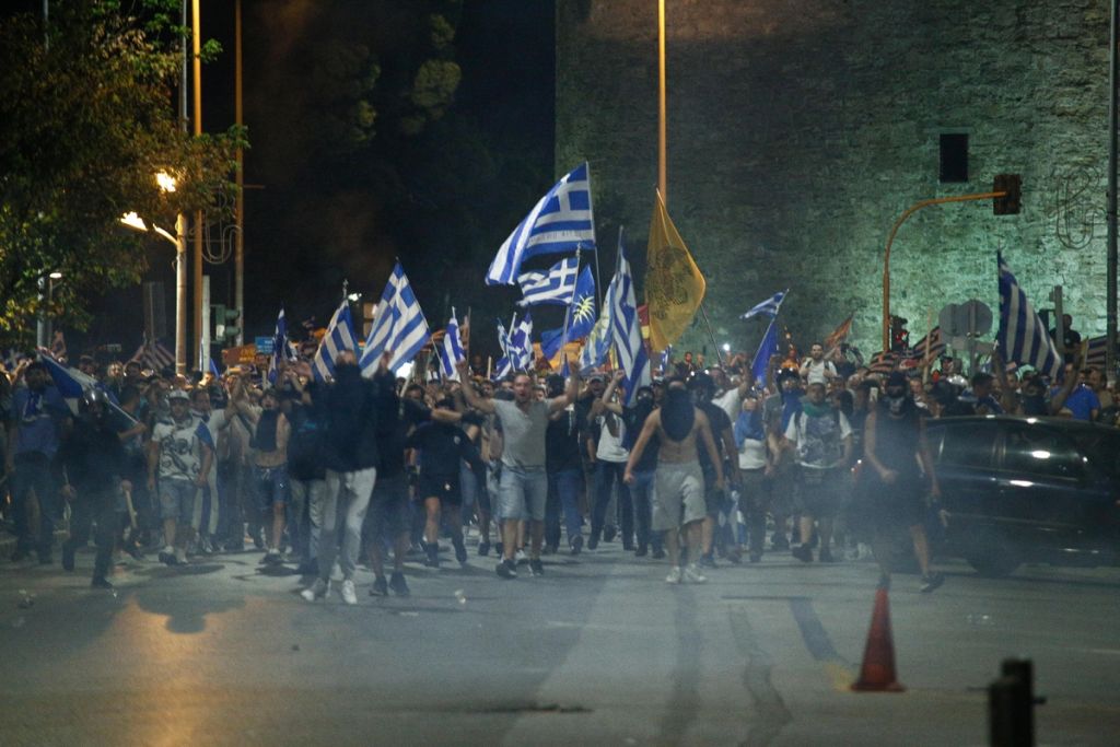 Πολίτες από τη Θεσσαλονίκη και άλλες πόλεις της Ελλάδας διαδηλώνουν για την ελληνικότητα της Μακεδονίας, παρά τα εκτεταμένα επεισόδια που σημειώνονται από νωρίς το απόγευμα