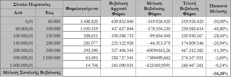 Έτσι, μετά την κατανομή και των επιπλέον 200 εκατ. ευρώ η συνολική μεσοσταθμική μείωση στον ΕΝΦΙΑ από το 26,18% (της μείωσης στη Β Φάση) θα φτάσει το 30% σε σχέση με τη σημερινή επιβάρυνση.