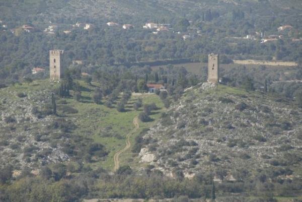 Δυτικά από τα Φύλλα, στην περιοχή του Μύτικα με τις εκτεταμένες αμπελοκαλλιέργειες, ορθώνονται, σε γειτονικά υψώματα, δύο εντυπωσιακοί πύργοι, άγρυπνοι φρουροί του τόπου από το Μεσαίωνα.