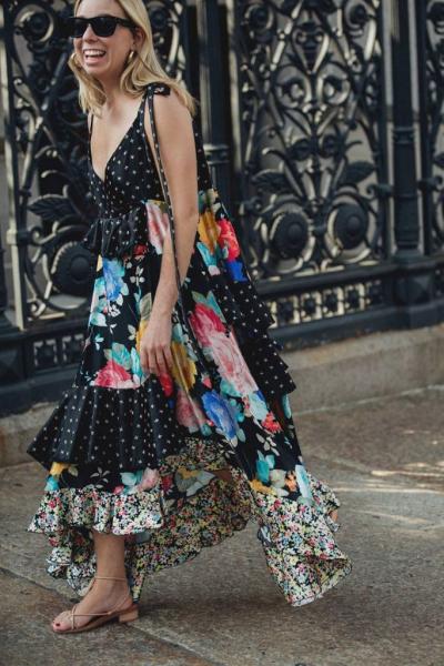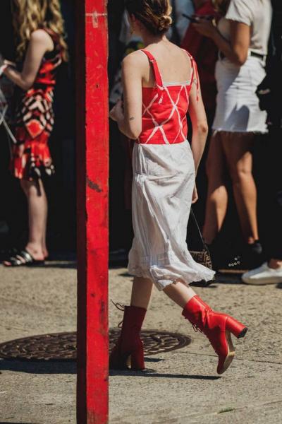 Ο καιρός ακροβατεί ανάμεσα σε ξαφνικές βροχές και ανυποψίαστες ηλιοφάνειες σε συνδυασμό με την αυξημένη υγρασία, αυτό όμως φαίνεται πως δεν πτόησε το fashion κοινό της πόλης. Φαρδιά και άνετα ρούχα, wrap φορέματα με βολάν, ολόσωμες φόρμες, τολμηρά μοτίβα και αθλητικά παπούτσια.