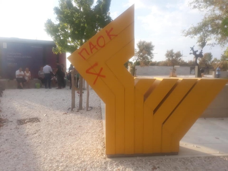 Με μαύρη και κόκκινη μπογιά έγραψαν τόσο στον περιβάλλοντα χώρο του Κήπου όσο και σε ένα από τα γλυπτά.