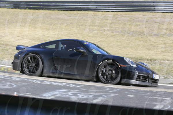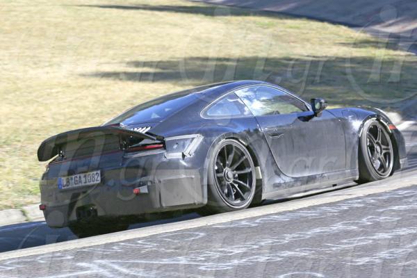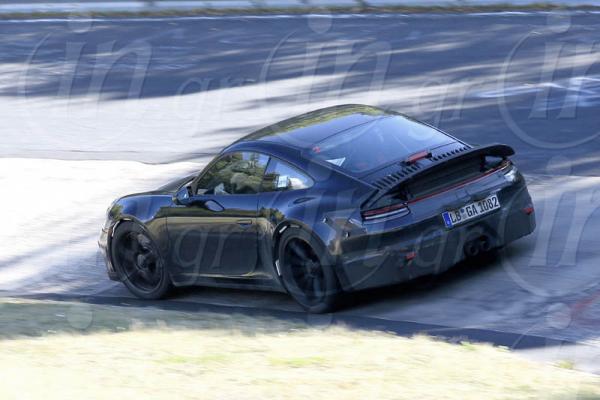 Ανεξαρτήτως των ικανοτήτων που επέδειξε η νέα 911 GT3 ως δοκιμαστικό πρωτότυπο στο «Ring», μια προσεκτική παρατήρηση στις εξωτερικές της επιφάνειες και στον τρόπο που έχουν επιχειρήσει να καμουφλάρουν ορισμένα σημεία, οι μηχανικοί της Porsche, προδίδουν ότι η σκληροπυρηνική έκδοση θα υιοθετήσει μεγαλύτερα μετατρόχια από τις υπόλοιπες πιο «προσγειωμένες» εκδόσεις της.