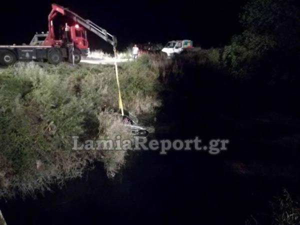 Λίγο μετά τις 9 το βράδυ και με τη βοήθεια γερανού το αυτοκίνητο ανασύρθηκε από το κανάλι.