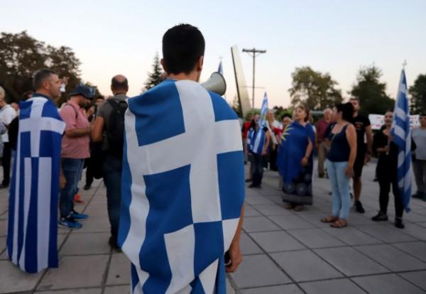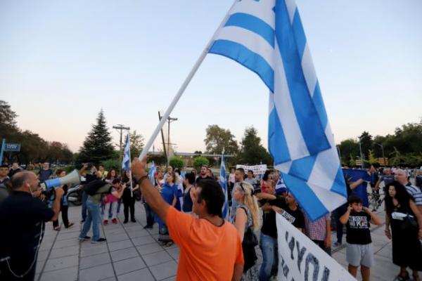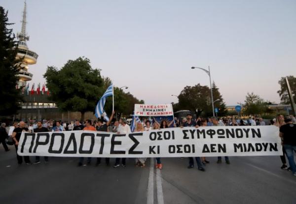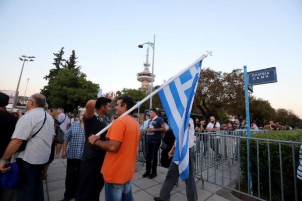 Ειρηνική συγκέντρωση διαμαρτυρίας για τη Συμφωνία των Πρεσπών, λίγο πριν και κατά τη διάρκεια της ομιλίας του προέδρου της ΝΔ, Κυριάκου Μητσοτάκη, στο Συνεδριακό Κέντρο «Ι.Βελλίδης» -πραγματοποιήθηκε έξω από τη νότια πύλη της ΔΕΘ.
