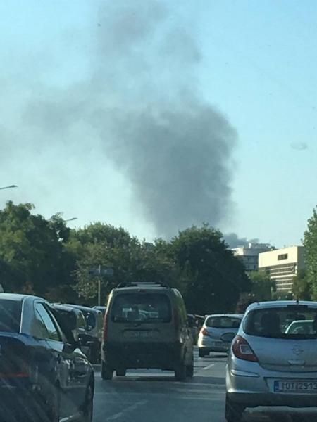Η φωτιά, η οποία καίει απορρίμματα, έχει ως αποτέλεσμα σε πολλά σημεία της Θεσσαλονίκης να είναι ορατοί οι καπνοί.