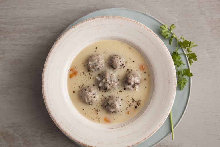 Η κ. Τέτα Πουλιοπούλου, ιδιοκτήτρια και σεφ στο εστιατόριο "Ντολτσό" στην Καστοριά, βάζουμε τα ασπράδια του αβγού μέσα στη ζύμη του κιμά ώστε να τον αφρατέψει και με τους κρόκους φτιάχνει ένα κρεμώδες, σχεδόν βελούδινο αβγολέμονο.