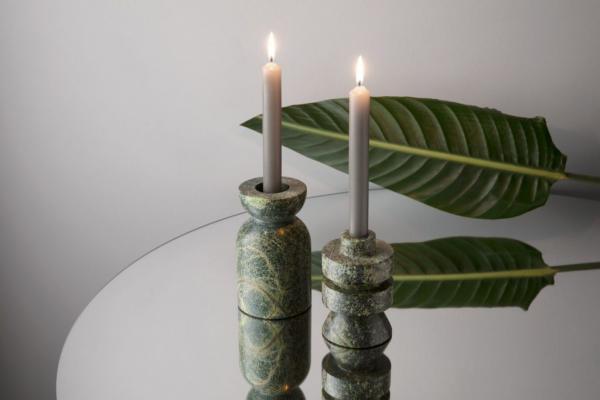 Ο Tom Dixon δημιούργησε μια συλλογή από κεριά και πιατέλες από μάρμαρο που προέρχεται από τα δάση της Ινδίας και ονομάζεται «Rock».
