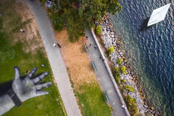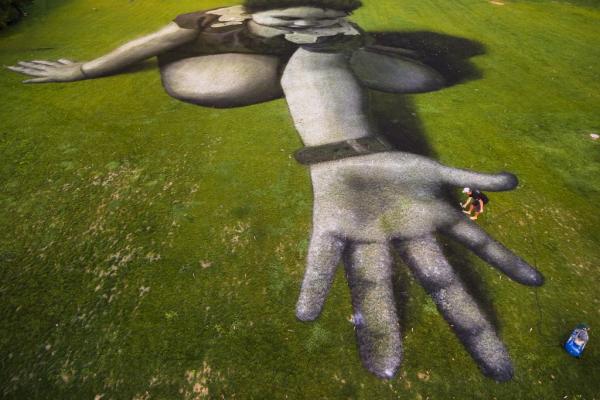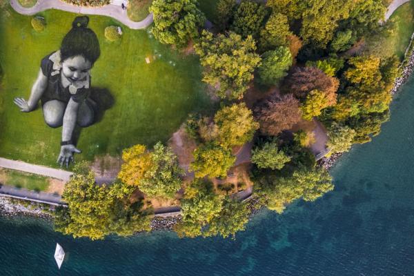 «Μήνυμα από το μέλλον» ονομάζεται η δουλειά του γάλλου καλλιτέχνη Saype στο πάρκο La Perle du Lac στη Γενεύη.