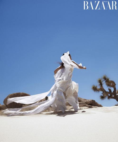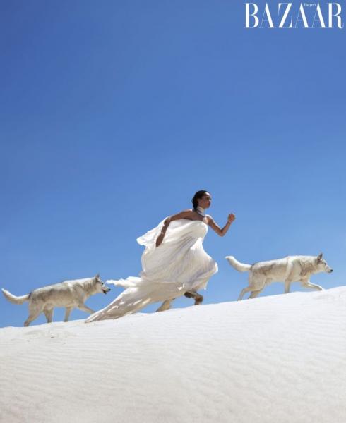 Με ρούχα αποκλειστικά από τον οίκο Saint Laurent, χωρίς να χάνει το μποέμ στυλ της, μαγνητίζει τον φακό στην έρημο και δεν φοβάται την φυσική της ομορφιά, ούτε τους λύκους!