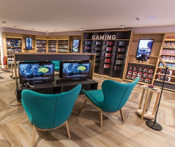 Στον πρώτο όροφο βρίσκονται οι βιωματικές γωνιές των smart home και gaming. Εκεί μπορεί κανείς να γνωρίσει την εμπειρία του έξυπνου σπιτιού, ανακαλύπτοντας τις «έξυπνες» συσκευές, και να διαχειριστεί τις λειτουργίες τους, φτιάχνοντας το σπίτι που ταιριάζει στις δικές του ανάγκες. Επιπλέον, τέσσερις πολυθρόνες υποδέχονται τους gamers, που μπορούν να παίξουν hot παιχνίδια και να ζήσουν super δράσεις. Και αυτοί που είναι fan των smart ή 4Κ Ultra HD τηλεοράσεων θα τις απολαύσουν στο maximum στη lounge γωνιά που έχει διαμορφωθεί.