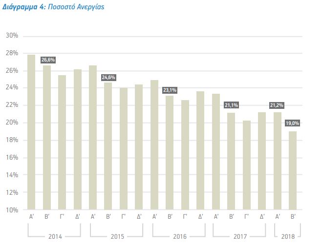 Το ποσοστό αυτό είναι το χαμηλότερο της τελευταίας επταετίας (από το γ΄ τρίμηνο του 2011).