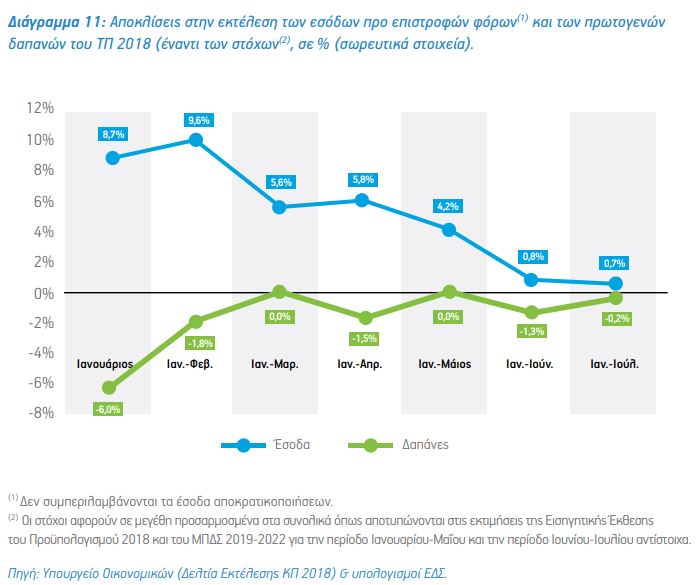 Συνολικά τα δημοσιονομικά αποτελέσματα επταμήνου προμηνύουν επίτευξη του δημοσιονομικού στόχου για το 2018.