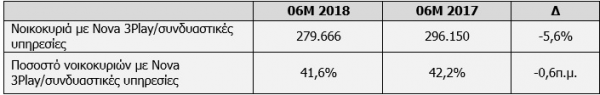 Στο τέλος του 1ου εξαμήνου του 2018, τα νοικοκυριά με Nova 3Play/συνδυαστικές υπηρεσίες της Forthnet, ανήλθαν στις 280 χιλιάδες. Το μερίδιο των συνδρομητών Nova 3Play, σε σχέση με το σύνολο της συνδρομητικής βάσης της Forthnet διαμορφώθηκε στο 41,6%.