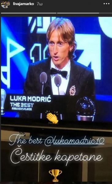 Το βραβείο «The best» της FIFA κέρδισε ο Λούκας Μόντριτς καταφέρνοντας να σπάσει την κυριαρχία των Λιονέλ Μέσι και Κριστιάνο Ρονάλντο. Ο κορυφαίος ποδοσφαιριστής του κόσμου για το 2018 εισέπραξε αναγνώριση και ανάμεσα στους ανθρώπους του χώρου που έσπευσαν να τον συγχαρούν είναι και ο συμπαίκτης του στην Εθνική Κροατίας Μάρκο Λιβάγια.