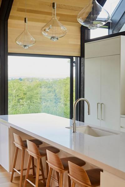 Σχεδιασμένο από το Amalgam Studio με έδρα το Μανχάταν, το σχέδιο του σπιτιού παίρνει τα συνθήματα από τους παραδοσιακούς αχυρώνες που βρίθουν στην περιοχή. Μεγάλο και ορθογώνιο σε κάτοψη, η κατοικία ολοκληρώνεται με στέγαστρο και διαθέτει δομικό πλαίσιο ξύλου.