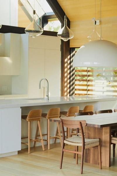 Περιλαμβάνοντας 5.000 τετραγωνικά πόδια (465 τετραγωνικά μέτρα), το σπίτι έχει ευάερα δωμάτια και οροφές με εκτεθειμένα δοκάρια. Μια σειρά από φεγγίτες, μαζί με προσεκτικά τοποθετημένα παράθυρα, φέρνουν άφθονο φυσικό φως στους χώρους.