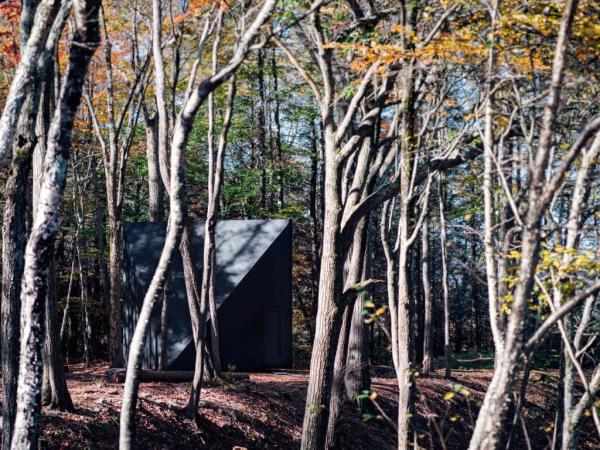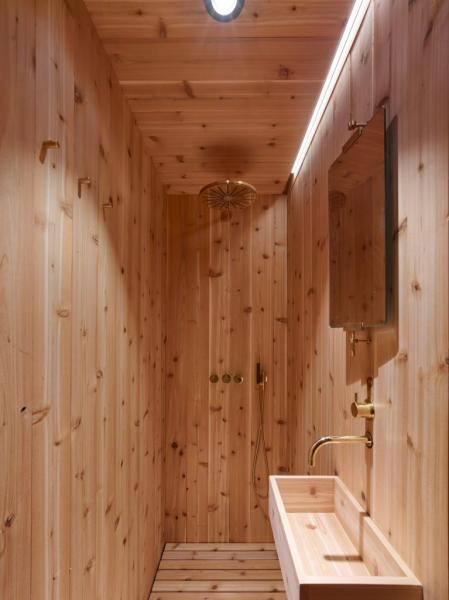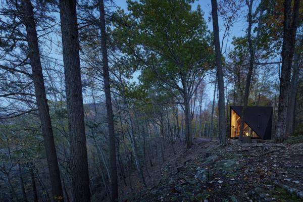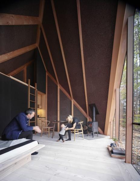 Περιέχει μια σειρά τριγωνικών τοίχων κατασκευασμένων από σκουρόχρωμο πεύκο που καμπυλώνει μέχρι να σχηματίσει μια πίσσα, παρόμοια με τις καμπίνες σε σχήμα A που είναι χαρακτηριστικές της περιοχής. Ωστόσο, το A45, όπως ονομάζεται, έχει μια τετράγωνη βάση με ευθεία γραμμή οροφής, προσφέροντας μια νέα άνεση στο παραδοσιακό στιλ.