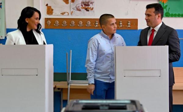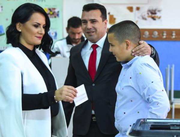 Νωρίς το πρωί ο Ζόραν Ζάεφ προσήλθε στο εκλογικό κέντρο για να ασκήσει το εκλογικό του δικαίωμα συνοδευόμενος από τον γιο του, Ντούσκο.