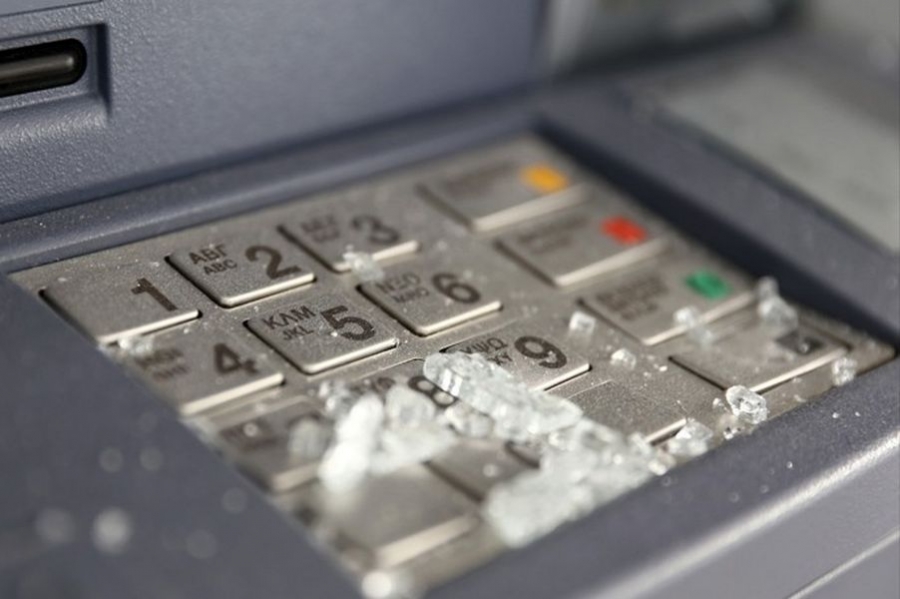 Προκλήθηκαν ζημιές στο ATM και στη τζαμαρία του πολυκαταστήματος.