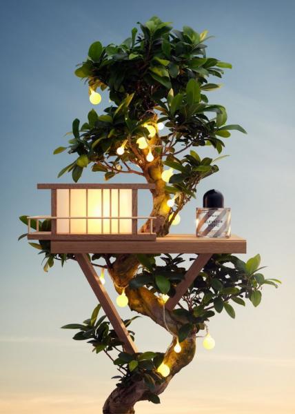 Μια περίπλοκη σύλληψη όπου αναδημιουργούσε σύνολα γνωστών αρχιτεκτονικών ρυθμίσεων, εστιάζοντας κυρίως στα μπουκάλια αρωμάτων.