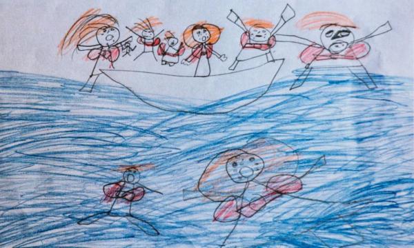 Η εικόνα που έχει επιλέξει ο αρθογράφος μιλάει από μόνη της: πρόκειται για μια παιδική ζωγραφιά η οποία αποτυπώνει το ταξίδι μέσω θαλάσσης, όπου άνθρωποι στέκονται φοβισμένοι πάνω σε μια λέμβο ενώ άλλοι βρίσκονται βυθισμένοι στη θάλασσα.