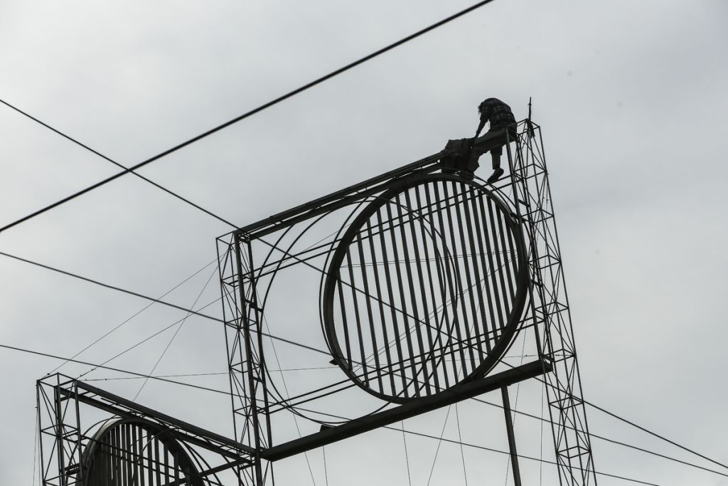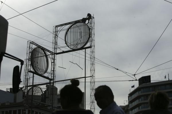 Ο άντρας έχει ανέβει σε γλυπτό, που βρίσκεται πάνω στην πλατεία, και απειλεί να αυτοκτονήσει.