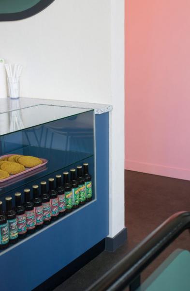 Τα σχήματα που δανείστηκαν από την αρχιτεκτονική της Μέσης Ανατολής και τα χρώματα των υπερβολικά κορεσμένων φωτογραφιών φαγητού, που συχνά συναντούμε στα πλαστικοποιημένα μενού, δημιούργησαν την έμπνευση για το εσωτερικό αυτού του fast food λιβανέζικου εστιατορίου στη Βικτόρια του Καναδά.
